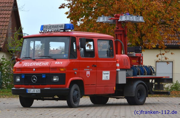 Fahrgestell Daimler Benz Typ 608, Aufbau Bachert Bad Friedrichshall Baujahr 1974, Feuerlöschkreiselpumpe mit 800 Liter / Minute Leistung, Beladeplan II (technische Hilfeleistung) anstelle der Tragkraftspritze Rettungsspreizer Fabrikat Hurst mit Pumpenaggregat (damals 1. Rettungsspreizer im westlichen Landkreis). Ab 16.04.1994 Beladung geändert. Spreizer und Aggregat in Mehrzweckfahrzeug umgeladen, dafür größere Menge an Schlauchmaterial verladen. Ausgemustert 19.09.1996 an Werkfeuerwehr AEG Rothenburg verkauft.