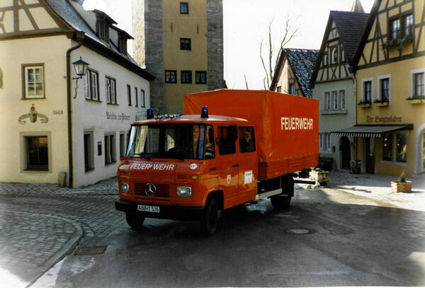 Fahrgestell Daimler Benz Typ 410, Ausbau ursprünglich Binz; Baujahr 1983. Ein ehemaliger Rettungswagen des BRK Augsburg. Konnte durch Spenden der Rothenburger Geldinstitute gekauft und umgebaut werden. Der Umbau zum Feuerwehrfahrzeug erfolgte im Mai 1990. Beladung: Chemieschutzanzüge, Wetterjacken, Trainingsanzüge, Feuerwehrschutzanzüge. Wurde auch als Verkehrs-Warnfahrzeug bei Autobahneinsätzen eingesetzt.