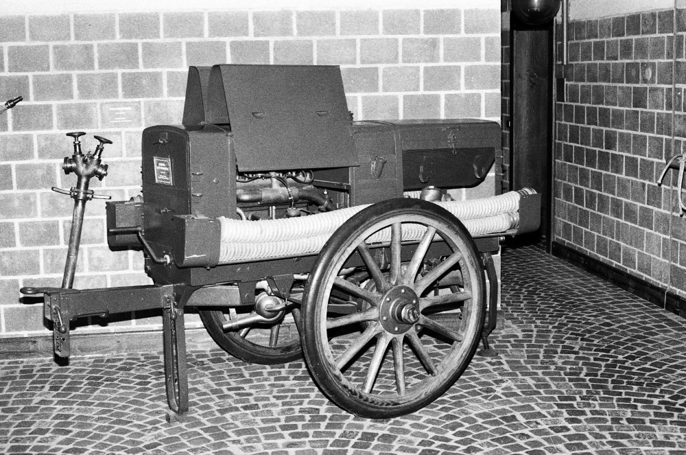 Fabrikat Magirus / Ulm; Typ 25 S, Baujahr 1934, 1500 Liter / Minute Vorbaupumpe und eingeschobener Tragkraftspritze „Goliath II/L“ mit 1000 Liter / Minute Pumpenleistung. Kaufpreis 17.000 Reichsmark. Fahrzeug wurde 1960 nach einem Motorschaden verschrottet. Die Tragkraftspritze existiert sogar heute noch.