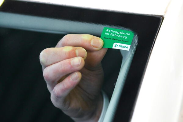 Die Rettungskarte für Ihren PKW bekommen sie kostenlos auf der Seite vom ADAC (Klick aufs Bild) Damit die Einsatzkräfte im Fall der Fälle nicht lange suchen müssen, ist ein geeigneter Platz für die Rettungskarte unter der Sonnenblende vom Fahrer oder Beifahrer. Zusätzlich gibt es noch Hinweisaufkleber mit der Aufschrift "Rettungskarte im Fahrzeug". Mit solch einem Aufkleber helfen Sie den Helfern auch. Dieser ist ebenfalls kostenlos erhältlich bei der DEKRA (Klick aufs Bild). Er sollte in der oberen Ecke der Windschutzscheibe wie auf dem Bild zu sehen aufgeklebt werden.