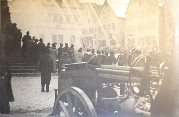 Die Motorspritze hatte eine Pumpenleistung von 800 - 1000 Liter/Minute, Hersteller Magirus / Ulm, Typ 26, Baujahr 1927. Da die Spritze von 1923 nur eisenbereift war und dadurch bei Überlandlöschhilfe stark beansprucht wurde, beschaffte man diese zweite Motorspritze mit einer vollgummibereiften Lafette.