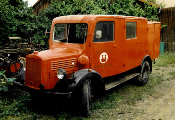 Fahrgestell Opel 3 to, Aufbau Magirus, Feuerlöschkreiselpumpe mit 1500 Liter / Minute Leistung, Wassertank vermutlich 2500 Liter. Baujahr vermutlich 1944. Fahrzeug wurde zwischen dem 22.02.1945 und 19.03.1945 der Feuerwehr Rothenburg als Ersatz für das zerstörte Löschfahrzeug zugeteilt. Die Unterlagen dazu sind möglicherweise beim Rathausband am 31.03.1945 verbrannt. Die Feuerwehrinterne Bezeichnung lautete: „Schleifer“. Fahrzeug wurde nach einem Pumpenschaden verschrottet. Den Wassertank hatte ein Bauer aus Eckertshof noch jahrelang als Wasserspeicher benutzt. Er war bis 1966 bei uns im Dienst und wurde damals in Eigenarbeit umgebaut. Neben dem Tank war an den Seiten viel Schlauchmaterial untergebracht.
