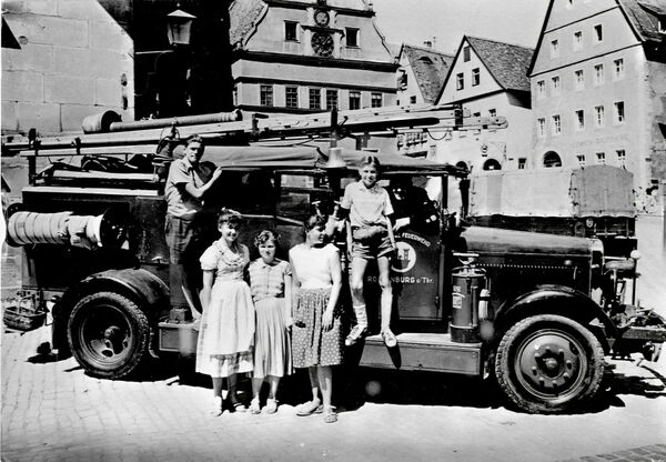 ursprünglich leichtes Löschgruppenfahrzeug (später LF 8), Fahrgestell Daimler Benz L 1500 S, Aufbau vermutlich Magrius / Ulm Baujahr 1942. Gehörte während des Krieges vermutlich der Luftwaffe Illesheim, da ursprüngliche Lackierung grau gewesen sein soll. Ab 1955 war er der Feuerwehr Rothenburg überlassen und als Feuerwehrfahrzeug eingesetzt. Feuerwehrinterne Bezeichnung „Hullerwagen“. Im Jahr 1974 ausgemustert, Anschließend in verschiedenen Scheunen der Stadt aufbewahrt. Am 15.03.1990 an den Verein „Freunde der alten Feuerwehr Mühldorf e.V.“ Mühldorf am Inn verschenkt. Funkrufname Tauber (bzw. Florian Rothenburg)