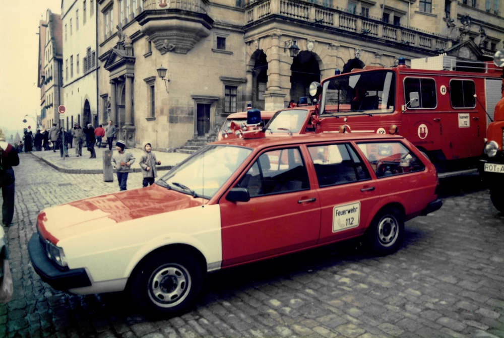 Fabrikat Volkswagen VW Passat, Baujahr 1983, gehörte zuerst Fa. Neuberger Gebäudeautomation Rothenburg als Kundendienstfahrzeug, ab Oktober 1985 von Feuerwehr Rothenburg gekauft und zu Feuerwehrfahrzeug in eigener Regie umgebaut. Ausgemustert 22.06.1996 und an einen Privatmann aus Bayreuth verkauft.
