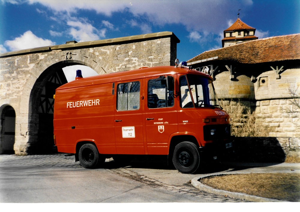 Fahrgestell Daimler Benz Typ 410, Ausbau ursprünglich Binz; Baujahr 1983. Ein ehemaliger Rettungswagen des BRK Augsburg. Konnte durch Spenden der Rothenburger Geldinstitute gekauft und umgebaut werden. Der Umbau zum Feuerwehrfahrzeug erfolgte im Mai 1990. Beladung: Chemieschutzanzüge, Wetterjacken, Trainingsanzüge, Feuerwehrschutzanzüge. Wurde auch als Verkehrs-Warnfahrzeug bei Autobahneinsätzen eingesetzt.
