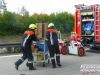 Auf der A7, Richtungsfahrbahn Würzburg, kam ein Van von der Fahrbahn ab, überschlug sich und kam auf der rechten Fahrspur auf dem Dach zum liegen. Bei dem Fahrzeug wurde der Motor heraus gerissen, durch die Hitze des Motors geriet die Böschung auf einer Fläche von ca. 20 mal 20 Meter in Brand. Mit dem HLF wurde die technische Rettung der eingeklemmten Person vorbereitet und durchgeführt, Zeitgleich begann ein Trupp mit dem Ablöschen des Brandes unter Zuhilfenahme des Schnellangriffs. Der eingeklemmte Mann wurde nach der Erstversorgung durch den Rettungsdienst aus dem Fahrzeug befreit und mit dem Rettungshubschrauber in eine Klinik geflogen. Weitere verletzte Personen wurden vom Rettungsdienst ins Krankenhaus gebracht. Die Aufräumarbeiten übernahm die Autobahnmeisterei Neusitz.