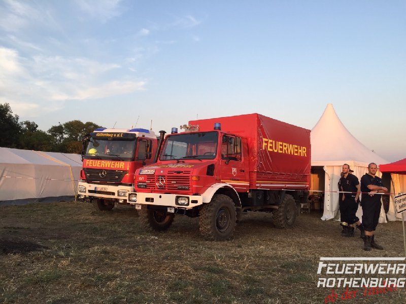- Wegen der anhaltenden Hitze und Trockenheit, hat die Feuerwehr Rothenburg mehrmals die Wiese vor den beiden Bühnen bewässert.