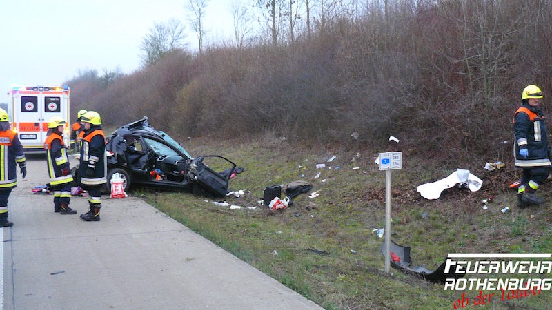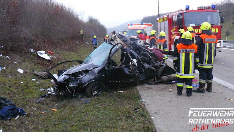 Zu einem gemeldeten Pkw- Brand nach einem Verkehrsunfall wurden wir, zusammen mit den Kameraden aus Burgbernheim und Hartershofen, auf die A 7, Richtungsfahrbahn Ulm gerufen. Ein Pkw stand schwer beschädigt auf dem Standstreifen, bzw. Grünstreifen. Zwei Insassen waren verletzt in dem Fahrzeug eingeschlossen, jedoch nicht eingeklemmt. Die Türen wurden durch Kameraden der FFW Burgbernheim geöffnet. Ein Fahrzeugbrand, wie über Notruf gemeldet, war glücklicherweise nicht entstanden. Die Feuerwehr Rothenburg sperrte die rechte Fahrbahn ab. Nach der Versorgung der Verletzten wurde die Sperrung wieder aufgehoben.