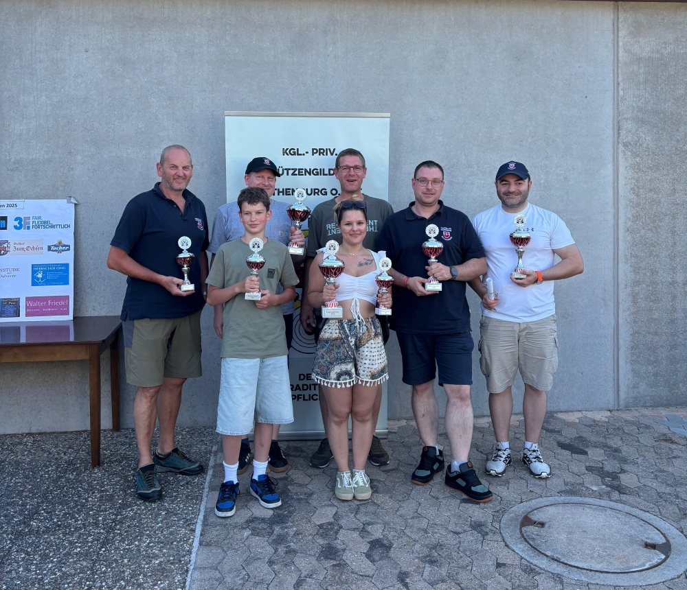 Auch in diesem Jahr nahm die Feuerwehr Rothenburg ob der Tauber mit großer Freude am traditionellen Bürgerschießen der Schützengilde Rothenburg teil. Die Veranstaltung ist fester Bestandteil des gesellschaftlichen Lebens unserer Stadt und bietet eine schöne Gelegenheit, Kameradschaft, Tradition und Gemeinschaft über Vereinsgrenzen hinweg zu pflegen. Mit einer motivierten Gruppe stellten sich unsere Feuerwehrkameradinnen und -kameraden der sportlichen Herausforderung am Schießstand. Dabei standen nicht nur Treffsicherheit und Ehrgeiz im Vordergrund, sondern vor allem der gemeinsame Spaß und der Austausch mit anderen Vereinen, Bürgerinnen und Bürgern der Stadt. Das Bürgerschießen bot erneut einen gelungenen Rahmen, um die enge Verbundenheit zwischen Feuerwehr, Schützengilde und der Stadtgesellschaft zu zeigen. Solche Veranstaltungen stärken den Zusammenhalt und unterstreichen, dass die Feuerwehr nicht nur im Einsatzfall, sondern auch im gesellschaftlichen Leben präsent ist. Trotz eines spontanen Einsatzes für die Feuerwehr den wir zwischendurch noch erledigten, konnten wir wie auf dem Bild zu sehen einiges an Preisen abräumen. Ein herzlicher Dank gilt der Schützengilde Rothenburg für die hervorragende Organisation und die kameradschaftliche Atmosphäre. Wir freuen uns bereits auf eine erneute Teilnahme im kommenden Jahr und auf viele weitere gemeinsame Veranstaltungen im Zeichen von Tradition und Gemeinschaft. 🚒🎯