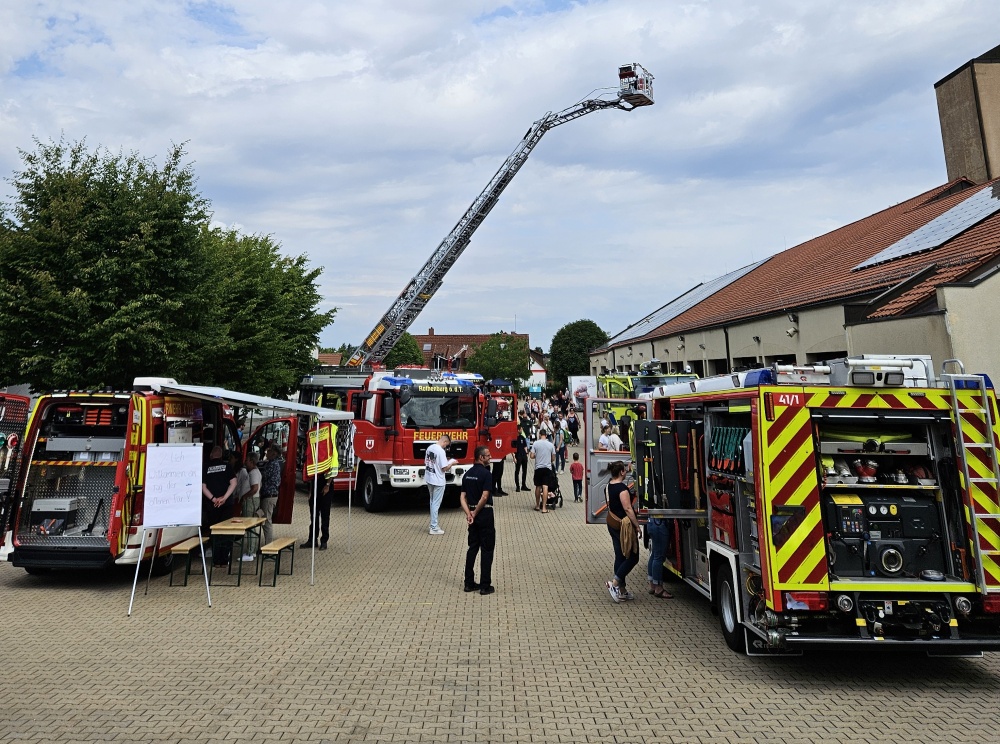 Großen Zuspruch aus der Bevölkerung erhielt der Tag der offenen Tür der Feuerwehr Rothenburg ob der Tauber, der im Jahr 2025 am Feuerwehrgerätehaus stattfand. Zahlreiche Besucherinnen und Besucher nutzten die Gelegenheit, sich aus erster Hand über die Arbeit, Technik und Ausbildung der Feuerwehr zu informieren. Bei bestem Wetter präsentierte die Feuerwehr ihre Einsatzfahrzeuge und Gerätschaften. Besonders die Vorführungen zu technischen Hilfeleistungen und zur Brandbekämpfung stießen auf reges Interesse und vermittelten eindrucksvoll, welche vielfältigen Aufgaben die Feuerwehr im Einsatzalltag bewältigt. Die Einsatzkräfte erklärten anschaulich Vorgehensweisen, Abläufe und Sicherheitsaspekte und standen für Fragen jederzeit zur Verfügung. Ein besonderes Highlight für die jüngsten Gäste war das abwechslungsreiche Kinderprogramm. Neben Mitmachaktionen und spielerischen Angeboten konnten die Kinder Feuerwehr hautnah erleben. Auch die Jugendfeuerwehr nutzte den Tag, um ihre Arbeit vorzustellen und Interesse für das Ehrenamt zu wecken. Für das leibliche Wohl der Besucher war bestens gesorgt. In geselliger Atmosphäre ergaben sich viele gute Gespräche zwischen Bevölkerung und Einsatzkräften, die den Tag zu einer gelungenen Veranstaltung machten. Der Tag der offenen Tür 2025 zeigte einmal mehr, wie wichtig der Austausch zwischen Feuerwehr und Bürgerinnen und Bürgern ist. Die Feuerwehr Rothenburg ob der Tauber bedankt sich herzlich bei allen Gästen, Helferinnen und Helfern sowie Unterstützern, die zum Erfolg dieser Veranstaltung beigetragen haben. 🚒